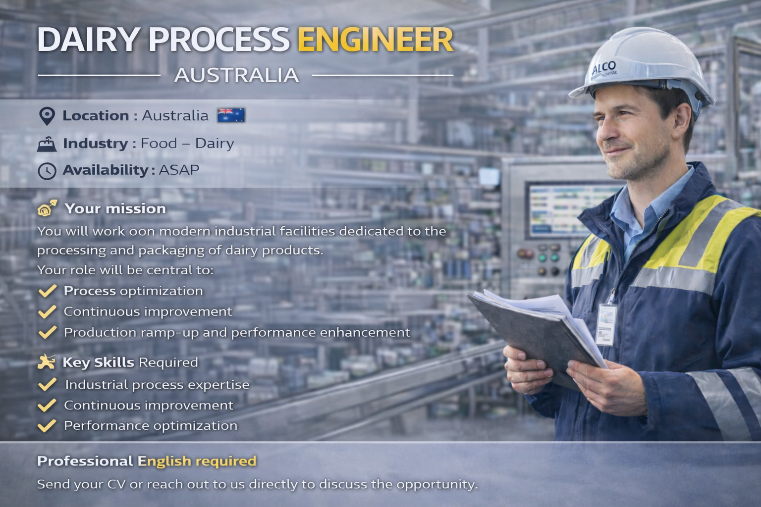 ALCO Engineering specializes in industrial engineering, packaging, food processing, and complex project management. We offer tailor-made solutions for process industries, combining innovation, performance, and reliability.